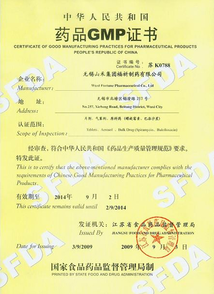 日前,我公司如期獲得由江蘇省食品藥品監(jiān)督管理局頒發(fā)的國內(nèi)新一代喹諾酮類抗生素巴洛沙星原料藥及其口服固體制劑的《藥品GMP證書》(證書編號(hào):蘇K0788),并取得由江蘇省食品藥品檢驗(yàn)所出具的藥品上市前檢驗(yàn)報(bào)告書,為新產(chǎn)品的市場招標(biāo)和推廣工作提供了有力保證。